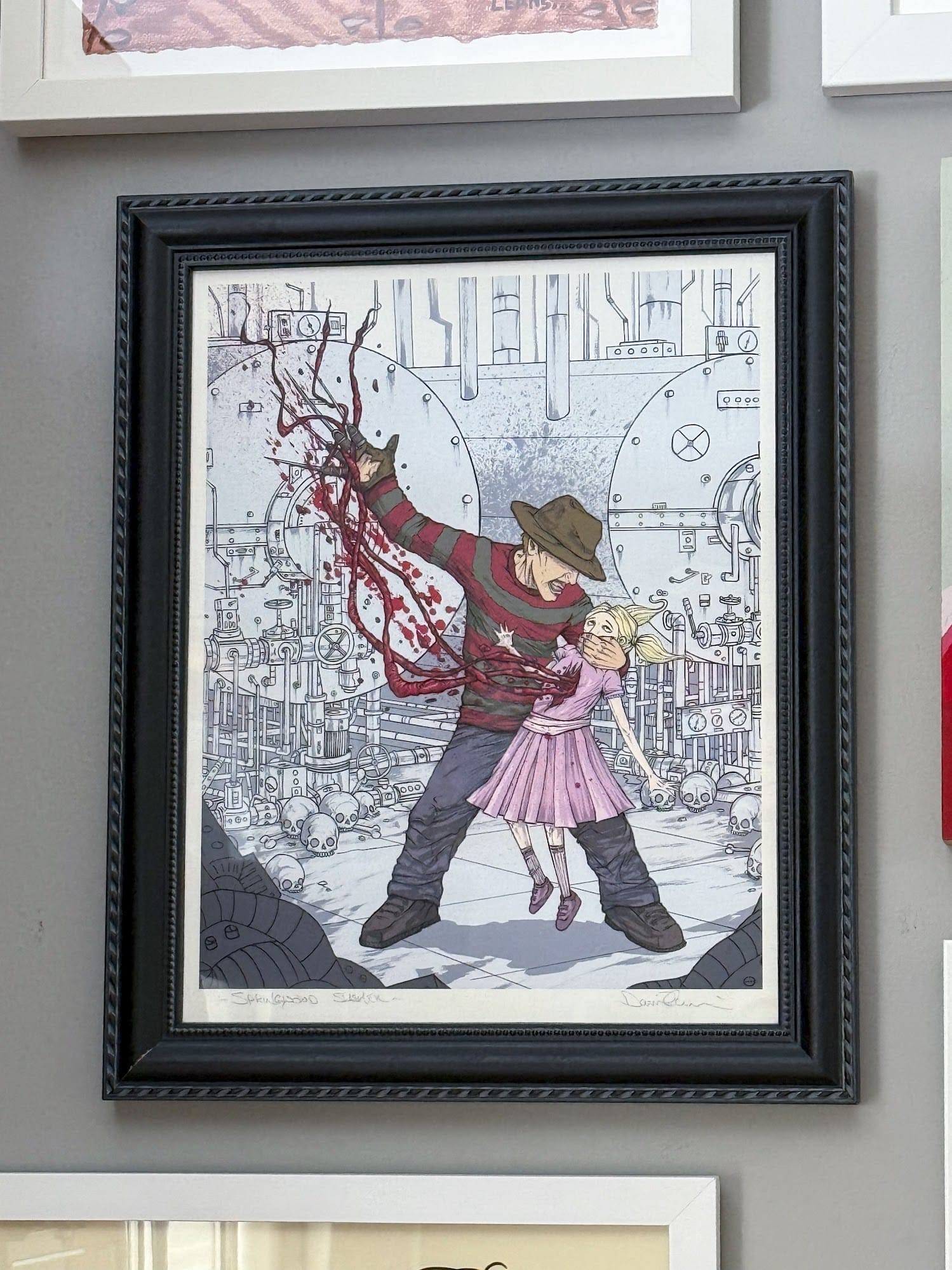 Years ago – maybe 2009? – before I became the obsessed collector I am today, I was just on a regular lunch break, walking down the street in North Hollywood, CA. Out of nowhere, I stumbled onto a pop-up art show that instantly stopped me in my tracks. Everywhere I looked, there was pop-culture monster goodness, all in this totally fresh, cool style. It was a pop-up with Alex Pardee and Dave Correia, and I was hooked on the spot. I ended up snagging an amazing Dexter DOPPELGÄNGERS print from Alex and a killer Freddy Kruger piece from Dave. That was the moment that sparked my entire collecting obsession. Now, years later, I’m absolutely HYPED for Alex’s upcoming show!