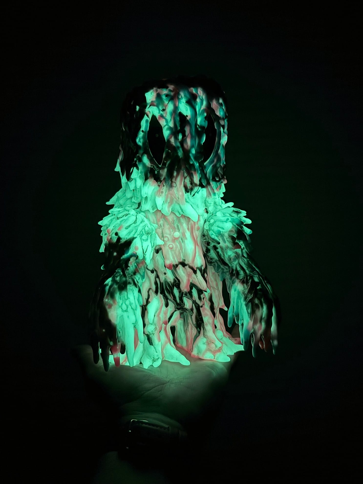 San Diego Comic-Con exclusive, glow-in-the-dark Hedorah. Toxic Blue colorway by MVH (Mutant Vinyl Hardcore) and produced by Unbox Industries. The sculpt is my favorite of Hedorah, ever. The paint is absolutely disgusting in the best possible way. Thick, drippy layers. Nasty texture. Glow that hits hard when the lights go out.